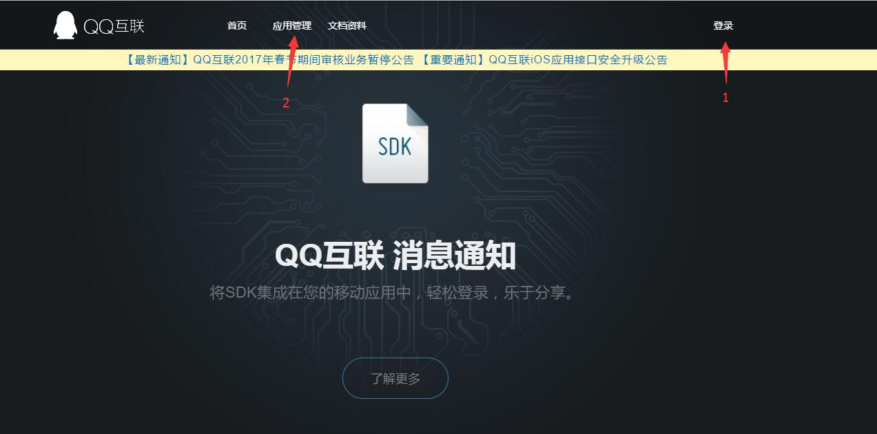登录网址:http://connect.qq.com/