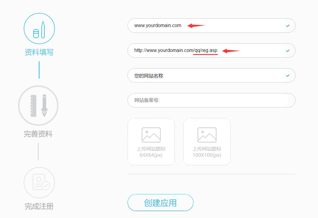 需要注意的地方:(1)回调地址为http://你的域名/qq/reg.asphttp://你的域名/qq/reg.php不可填错