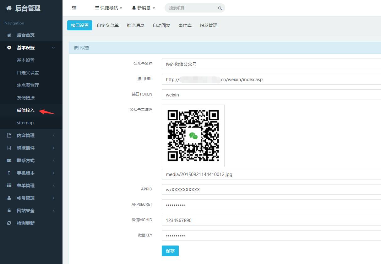 TOKEN可填写任意字符,但是需要与网站后台设置的“TOKEN”保持一致